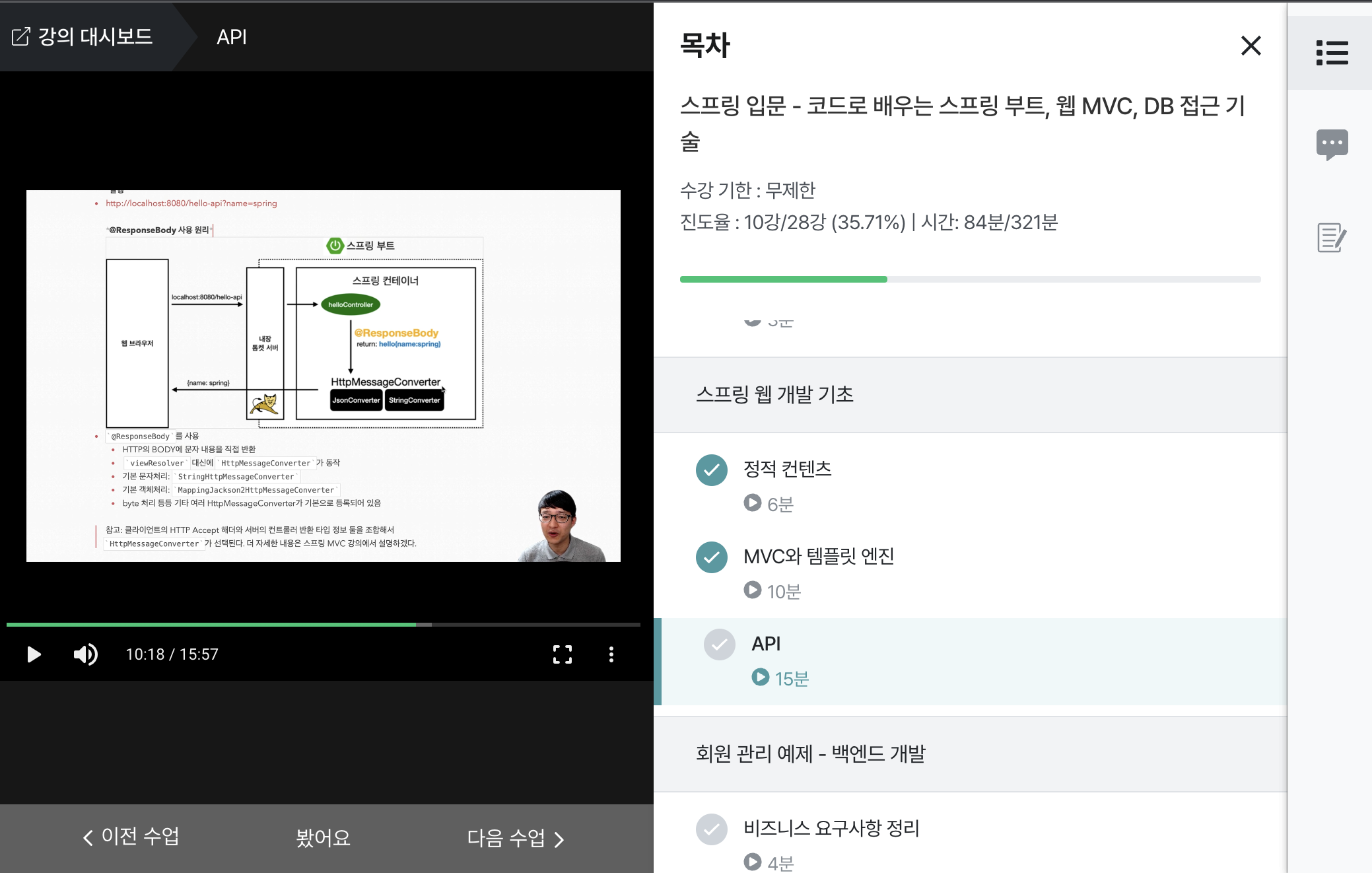 - API : 보통 객체를 반환, HttpMessageConverter를 통해 String 혹은 객체는 json 파일을 전달, View 이런거 없음